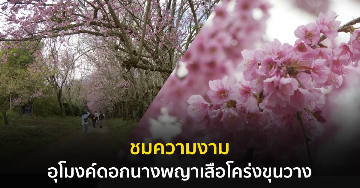 นางพญาเสือโคร่งนับร้อยต้นที่เรียงรายสองฝั่งถนนในศูนย์วิจัยเกษตรหลวงเชียงใหม่ ขุนวาง บนดอยอินทนนท์ จ.เชียงใหม่ ระยะทางราว 800 เมตร กลายเป็นอุโมงค์สีชมพูจากดอกนางพญาเสือโคร่งหรือซากุระเมืองไทย ที่กำลังบานสะพรั่งอวดดอกสีชมพูเข้มชมพูอ่อน สลับดอกพญาเสือโคร่งสีขาวสวยงาม เหมือนอยู่ในต่างประเทศ กลายเป็นเส่นห์ดึงดูดให้นักท่องเที่ยวเดินทางมาชื่นชมและเก็บภาพความสวยงามกันอย่างคึกคัก นักท่องเที่ยวหลายคนบอกว่าตั้งใจเดินทางมาชมความสวยงามของนางพญาเสือโคร่งที่นี่ให้ได้สักครั้งหนึ่งในชีวิต และเมื่อเห็นภาพตรงหน้าถึงกับหายเหนื่อยและประทับใจไปตามๆกัน