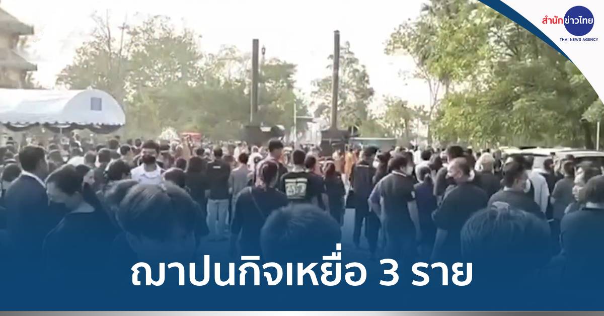 กทม. 20 ม.ค.- ที่วัดโรงช้าง มีพิธีฌาปนกิจ 3 ราย ผู้เสียชีวิตจากเหตุโรงงานพลุระเบิด ขณะที่ทางจังหวัดได้ประกาศปิดศูนย์ช่วยเหลือญาติและครอบครัวผู้เสียชีวิต แต่ยังเร่งช่วยเหลือเยียวยาครอบครัวผู้สูญเสียอย่างต่อเนื่อง