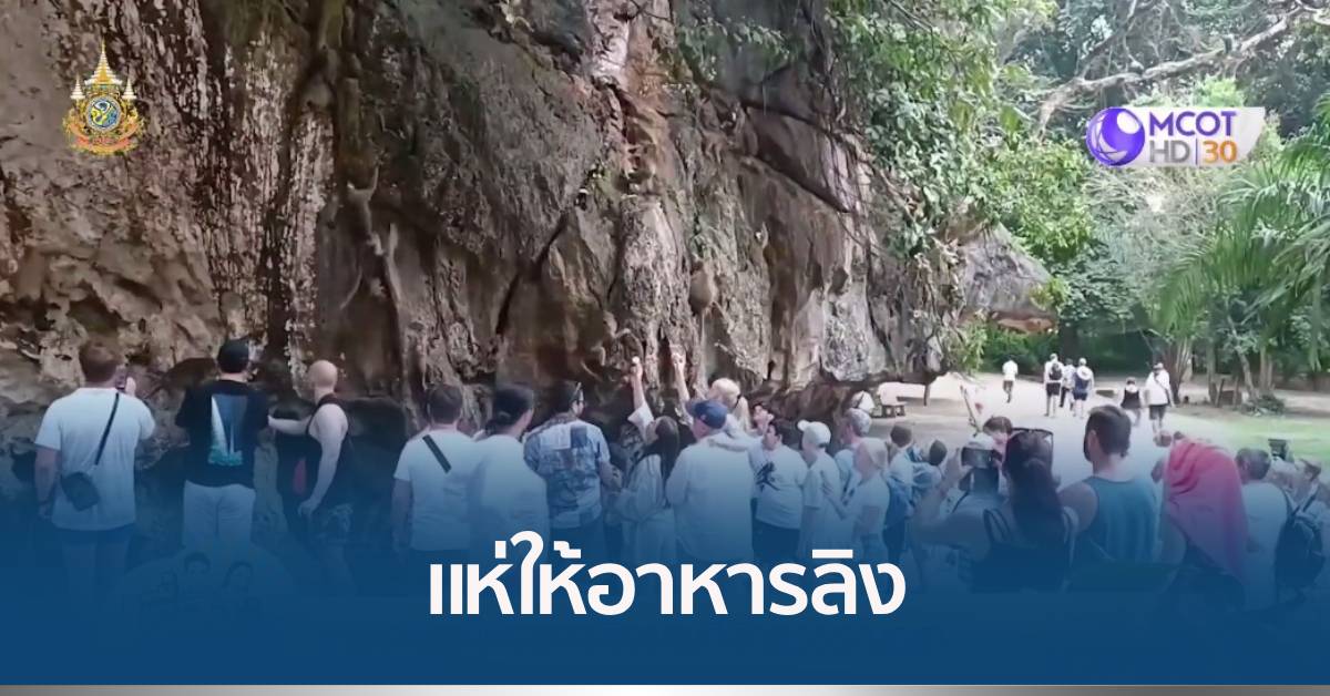 พังงา 25 ม.ค. – ล่องใต้ไปดูลิง ตอนนี้ฝูงลิงแสมบนภูเขา วัดสุวรรณคูหา จ.พังงา กำลังได้รับความนิยมจากนักท่องเที่ยวต่างชาติ ชื่นชอบให้อาหารลิงแสมบนภูเขา