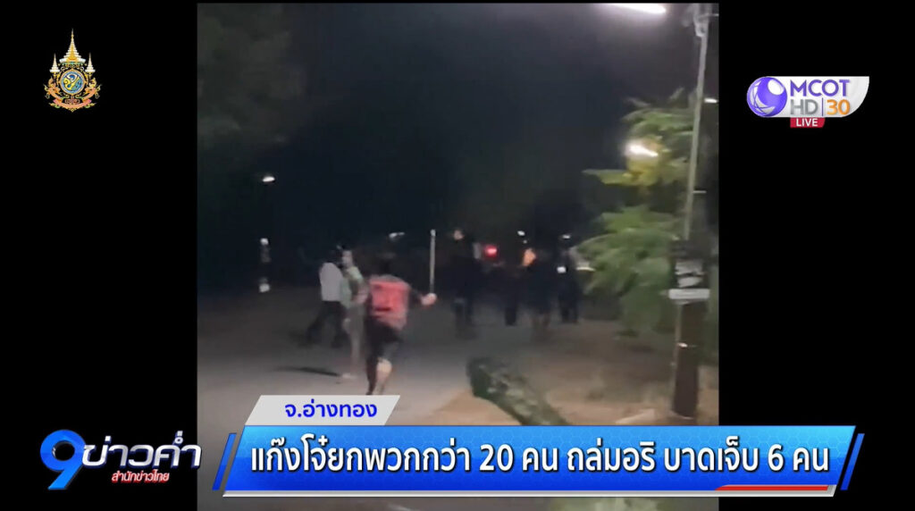 กลุ่มเยาวชนหลายสิบคนพร้อมอาวุธปืน และมีด ยกพวกตะลุมบอนกันอย่างรุนแรง ทำให้มีผู้ได้รับบาดเจ็บ 6 คน เป็นเยาวชนอายุ 15-18 ปี จำนวน 5 คน และชาวบ้านถูกลูกหลง 1 คน เหตุเกิดขึ้นที่บริเวณด้านหน้าร้านค้าริมบึงสำเภาลอย หมู่ที่ 1 ต.โรงช้าง อ.ป่าโมก จ.อ่างทอง โดยกลุ่มเยาวชนที่มาก่อเหตุเป็นกลุ่มเยาวชนในตำบลเอกราช อ.ป่าโมก จ.อ่างทอง โดยมีนายเอ็ม อายุ 18 ปี เป็นหัวโจก ซึ่งเป็นคู่อริกับกลุ่มผู้ได้รับบาดเจ็บในตำบลโรงช้าง โดยเยาวชนทั้ง 5 คน ได้รับบาดเจ็บจากอาวุธปืน มี 2 คน บาดเจ็บสาหัสถูกส่งตัวไปรักษาที่โรงพยาบาลอ่างทอง