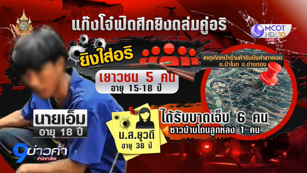 อ่างทอง 31 ม.ค. – แก๊งเยาวชนต่างตำบลเปิดศึกดวลเดือด ก่อนยิงถล่มคู่อริบาดเจ็บ 5 ชาวบ้านถูกลูกหลงอีก 1 ตำรวจตามรวบได้พร้อมอาวุธปืน เตรียมขยายผลจับกุมดำเนินคดีทั้งแก๊ง