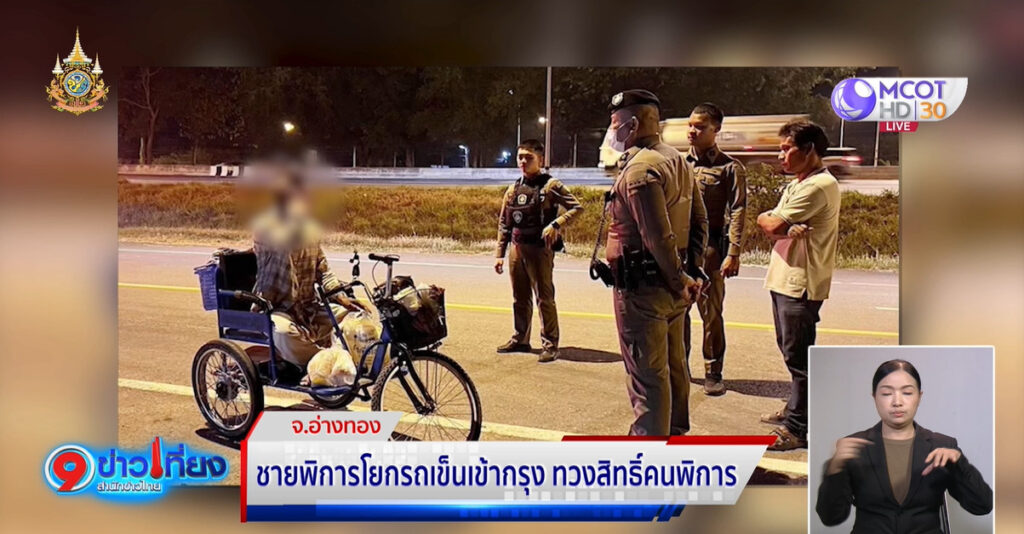 อ่างทอง 5 ก.พ. – ชายพิการโยกรถเข็น 400 กม. เข้ากรุงยืนยันตัวผู้พิการ ตำรวจพามาพักที่ สภ.ไชโย กลัวไม่ปลอดภัย แต่ผู้เสียหายหนีไปกลางดึก เร่งออกตามหาจนพบตัว