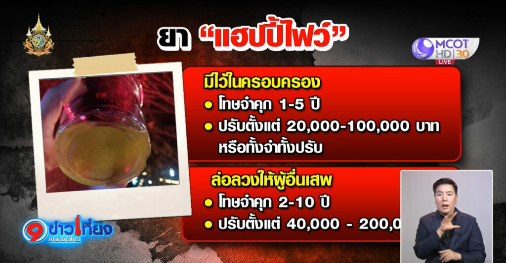 ผู้สื่อข่าวรายงานว่า จากการค้นหาข้อมูลยา “แฮปปี้ไฟว์” พบว่า เป็นวัตถุออกฤทธิ์ต่อจิตประสาท เป็นยานอนหลับที่ออกฤทธิ์เร็ว (ภายใน 15 – 30 นาที) ออกฤทธิ์ได้นาน เหมาะที่จะถูกนำไปใช้ในทางที่ผิด เช่น การมอมยา หรือนำไปใช้เสริมกับยาเสพติดอื่นๆ เช่น ใช้ “แฮปปี้ไฟว์” ภายหลังจากการเสพยาบ้า ยาไอซ์ เพื่อให้หลับ