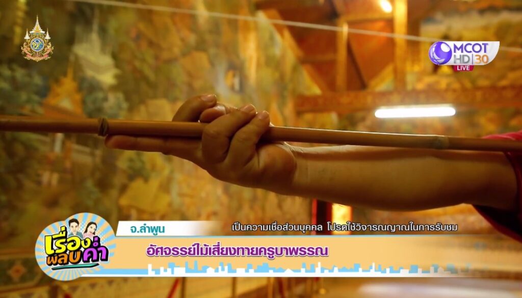 ลำพูน 6 ก.พ. – อัศจรรย์ไม้เสี่ยงทายครูบาพรรณ อดีตเจ้าอาวาสวัดพระพุทธบาทห้วยต้ม จ.ลำพูน ยางมัดปลายไม้เลื่อนเข้าออกจากตำแหน่งเดิมได้เอง หลังจากอธิษฐานเสี่ยงทาย