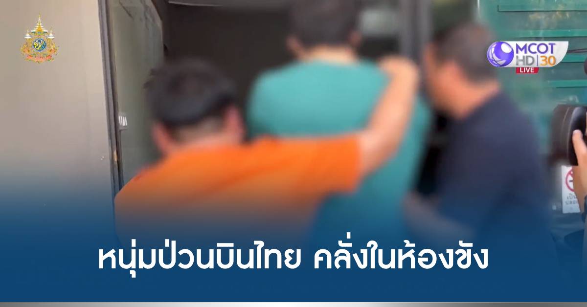 หลังตำรวจจับกุมชายวัย 40 ปี วิศวกรคอมพิวเตอร์ ชาวจีนสัญชาติแคนาดา ที่ก่อเหตุเปิดประตูเครื่องบินแอร์บัสเอ 320 ของสายการบินไทย เส้นทางเชียงใหม่-สุวรรณภูมิ จนเกิดความวุ่นวาย และทำให้มีเที่ยวบินและผู้โดยสารได้รับผลกระทบ ล่าสุด พ.ต.อ.มนัสชัย อินทร์เถื่อน ผกก.สภ.ภูพิงคราชนิเวศน์ เปิดเผยว่า เมื่อบ่ายวานนี้ (8 ก.พ.67) ผู้ต้องหาที่อยู่ในห้องคุมขังเกิดอาการเครียด พยายามทำร้ายตัวเอง โดยใช้ศีรษะโขกกับกรงเหล็ก และยังพยามกัดหลังมือตัวตัวเอง ทำให้สิบเวรต้องเข้าไประงับเหตุ พร้อมช่วยกันนำตัวส่งโรงพยาบาลประสาทให้แพทย์รักษา ซึ่งจนถึงช่วงเช้านี้ ผู้ต้องหาก็ยังคงอยู่ในความดูแลของแพทย์ ส่วนจะมีอาการทางจิตหรือไม่ จะต้องให้แพทย์ทำการวินิจฉัยอย่างละเอียดอีกครั้ง