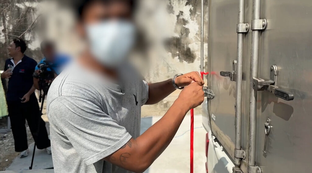 จากนั้นผู้สื่อข่าวสำนักข่าวไทย ไปซื้อเชือกที่ร้านขายสินค้าเบ็ดเตล็ด แบบที่คล้ายกับใช้มัดมือมัดเท้านายใหม่ ในราคา 20 บาท เพื่อนำมาให้นายนนท์ดู ซึ่งนายนายบอกว่า เป็นแบบเดียวกันกับที่ช่างกิตใช่ผูกที่ท้ายรถ กันประตูเปิดและของหล่น แต่ไม่น่าใช่เส้นเดียวกันที่ใช้ในการก่อเหตุ เพราะเส้นที่ท้ายรถช่างกิตนั้นเชือกค่อนข้างเก่า แต่ที่ใช้ก่อเหตุดูใหม่กว่า ซึ่งเงื่อนที่ใช้ผูกท้ายรถกับผูกมัดมือนั้นคนละเงื่อนกัน ที่ผูกมัดมือนั้นน่าจะเป็นเงื่อนที่ลูกเสือมัดกัน ซึ่งในวงการขนส่งจะมัดอีกแบบ แต่มีใช้เชือกแบบนี้ในการทำงาน ซึ่งนายนนท์สาธิตการใช้เชือกมัดท้ายรถให้ผู้สื่อข่าวดู