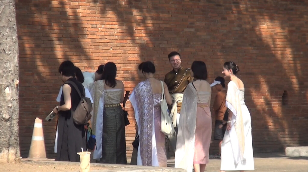 ขณะที่บริเวณข่วงประตูท่าแพ ในตัวเมืองเชียงใหม่ มีบรรดานักท่องเที่ยวจีนจำนวนมาก ที่มากับไกด์ เป็นหมู่คณะ และมาท่องเที่ยวกันเอง ก็จะไปเช่าชุดไทย พากันไปถ่ายภาพ กับกำแพงเมือง ประตูท่าแพ