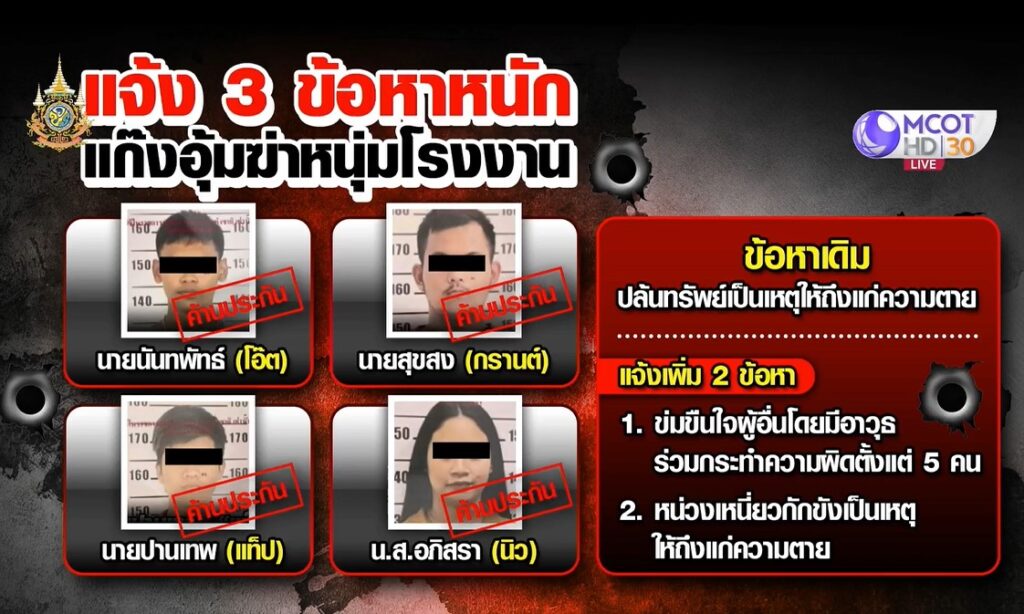 สำหรับนิว เป็น 1 ใน 4 ผู้ต้องหา ร่วมก๊วน “ช่างกิต” ถูกดำเนินคดี 3 ข้อหา ประกอบด้วย ร่วมกันปล้นทรัพย์เป็นเหตุให้ผู้อื่นถึงแก่ความตายโดยมีหรือใช้อาวุธปืนโดยใช้ยานพาหนะ, ข่มขืนใจผู้อื่นโดยมีอาวุธหรือโดยร่วมกันกระทำความผิดตั้งแต่ห้าคนขึ้นไป และหน่วงเหนี่ยวกักขังผู้อื่น เป็นเหตุให้ผู้ถูกหน่วงเหนี่ยวกักขังถึงแก่ความตาย ซึ่งเป็นผู้ต้องหารายที่ 2 ในคดีนี้ที่ได้รับการประกันตัว หลังจากเมื่อวานนี้ (8 ก.พ.) ศาลจังหวัดฉะเชิงเทรา ให้ประกันตัวแท๊ป หนึ่งในผู้ร่วมอยู่ในเหตุการณ์ ออกมาสู้คดี ใช้หลักทรัพย์เป็นที่ดินมูลค่า 800,000 บาท