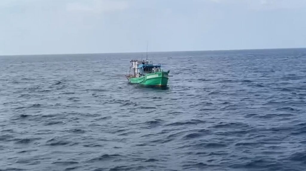 ภาพเหตุการณ์ขณะเครื่องบินตรวจการณ์ และเรือหลวงคลองใหญ่ ทัพเรือภาคที่ 2 สงขลา ไล่ล่าติดตามจับกุมเรือประมงเวียดนามที่ลักลอบเข้ามาคราดปลิงทะเล จำนวน 2 ลำ