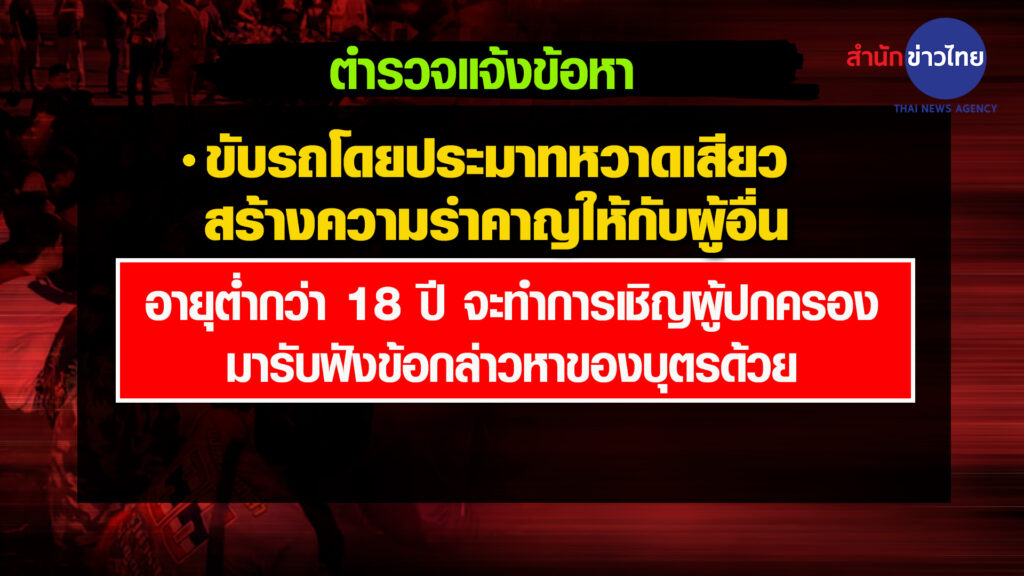 โดยทั้งหมดถูกเจ้าหน้าที่ตำรวจตั้งข้อกล่าวหาขับรถโดยประมาทหวาดเสียว สร้างความรำคาญให้กับผู้อื่น ก่อนที่จะส่งดำเนินคดีตามกฎหมาย ในส่วนเด็กที่มีอายุต่ำกว่า 18 ปี ทางตำรวจจะทำการเชิญผู้ปกครองมารับฟังข้อกล่าวหาของบุตรด้วย ในปฏิบัติการครั้งนี้นอกจากจะได้รับแจ้งจากชาวบ้านแล้ว ยังเป็นอีกหนึ่งนโยบายหลักของผู้บังคับการตำรวจภูธรจังหวัดสมุทรปราการ ในเรื่องการป้องกันและปราบปรามอาชญากรรมรวมถึงกลุ่มเด็กแว้นในพื้นที่ทั้ง 6 อำเภอ ซึ่งหลังจากนี้ทางตำรวจ สภ.พระสมุทรเจดีย์ จะลงพื้นที่สำรวจทุกคืนเพื่อแก้ไขปัญหาเด็กแว้นให้หมดไปจากพื้นที่ .-สำนักข่าวไทย