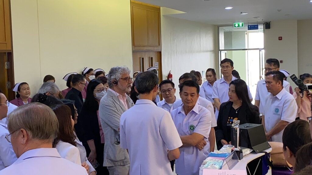 ที่โรงพยาบาลนครพิงค์ จังหวัดเชียงใหม่ วันนี้เหล่าบุคลากรทางการแพทย์ มาต้อนรับ นพ.ชลน่าน ศรีแก้ว รัฐมนตรีว่าการกระทรวงสาธารณสุข ที่นำคณะผู้แทนองค์การระหว่างประเทศ ทั้งองค์การอนามัยโลก, ยูนิเซฟ, สำนักงานกองทุนประชากรแห่งสหประชาชาติ ประจำประเทศไทย มาดูการดำเนินงานขับเคลื่อนการเพิ่มประชากร ด้วยการส่งเสริมการมีบุตรอย่างมีคุณภาพ ที่ทำอย่างครบวงจร ตั้งแต่ตั้งครรภ์ การคลอด การเกิด การสร้างโรงเรียนพ่อแม่ ตลอดจนดูแลเด็กหลังคลอดให้ปลอดภัย ซึ่งโรงพยาบาลนครพิงค์ถือเป็นตัวอย่างที่ดี รองรับการขับเคลื่อนสู่วาระแห่งชาติและการรับความสนับสนุนจากองค์การระหว่างประเทศ เพื่อพัฒนาประชากรและทุนมนุษย์ได้ต่อไป
