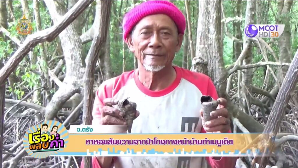 ตรัง 14 ก.พ. – พาไปกินหอยสันขวาน ที่ ต.เกาะลิบง อ.กันตัง จ.ตรัง ชาวบ้านออกหาในป่าโกงกางหน้าบ้านหลังน้ำลด นำมาทำเมนูหลายชนิด รสชาติเหมือนกินหอยชักตีน หรือหอยหลักไก่ แต่เนื้อเยอะ เคี้ยวกรุบๆ เหมือนเอ็นไก่ หากินได้เฉพาะในป่าโกงกางเท่านั้น