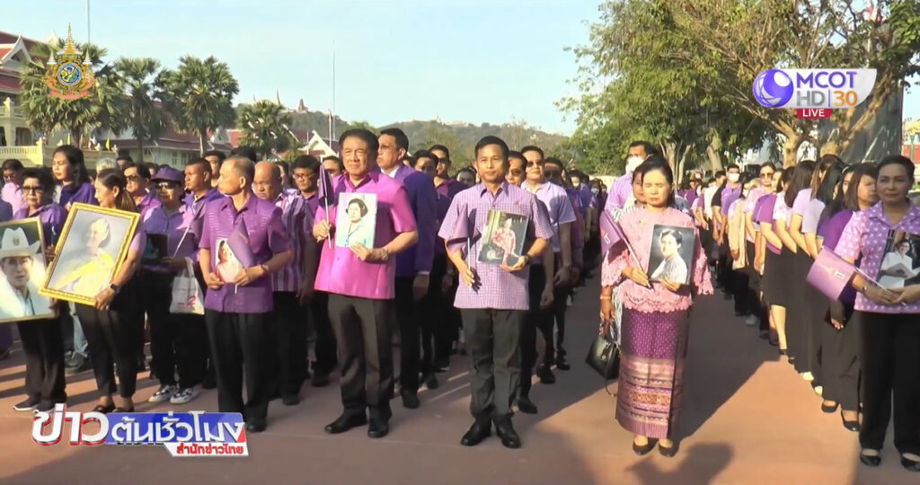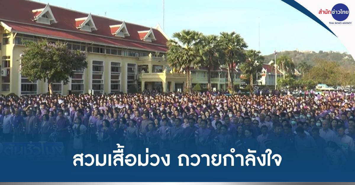 เพชรบุรี 19 ก.พ.-ชาวเพชรบุรีสวมเสื้อม่วง รวมตัวที่ลานรัฐพิธี ศาลากลางจังหวัดเพชรบุรี ถวายกำลังใจ กรมสมเด็จพระเทพฯ