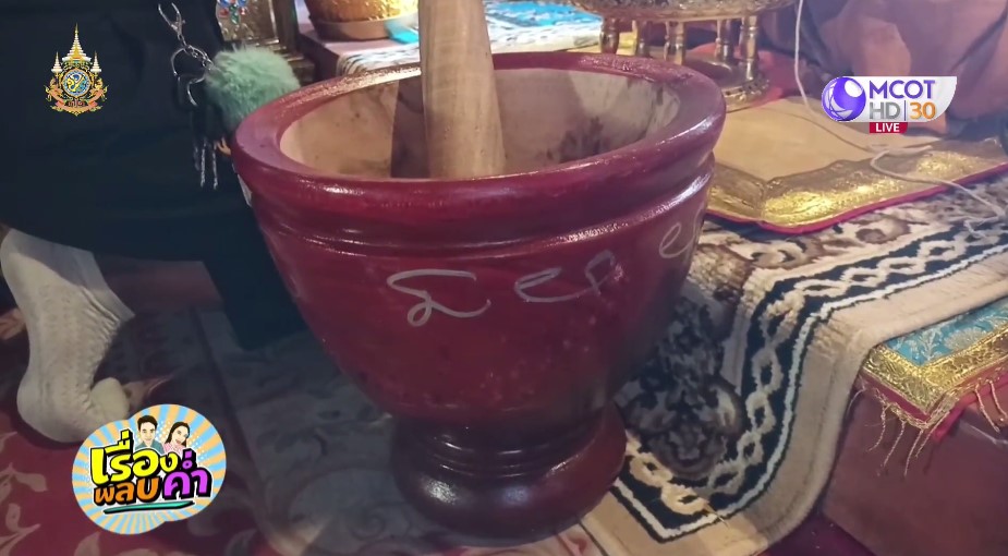 น.ส.เรืองลัดดา แม่ค้าร้านส้มตำแซ่บลืมผัว ซึ่งตั้งอยู่สามแยกขุนแพ่ง อ.เมืองพิจิตร หอบหิ้วครกยักษ์ และสากยักษ์ มาที่วิหารหลวงพ่อทองดำ วัดราชบูรณะ อ.เมืองพิษณุโลก เพื่อให้พระครูสิทธิธรรมวิภัช เจ้าอาวาสวัดราชบูรณะ ลงยันต์อักขระ นะมะมนต์ หรือเรียกว่า นมมนตวาน์ มนต์นางพญา ที่เชื่อว่าเป็นมนต์เรียกทรัพย์