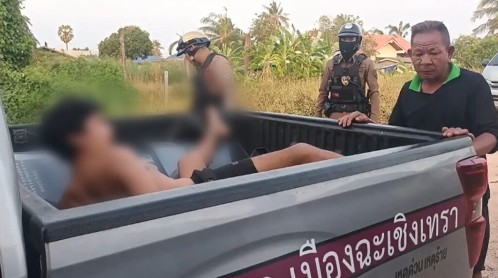 ตำรวจ สภ.เมืองฉะเชิงเทรา นำกำลังเข้าคุมตัวนายเกียรติชัย อายุ 26 ปี ที่ขัดขืนและส่งเสียงดังตลอดเวลา ถามว่าตัวเองทำอะไรผิดทำไมถึงมาจับ หลังจากทั้งเกลี้ยกล่อมทั้งดันกันอยู่นาน สุดท้ายก็พาตัวขึ้นรถกระบะของตำรวจ ซึ่งเจ้าหน้าที่ต้องใช้กุญแจมือล็อกขาทั้งสองข้างของนายเกียรติชัยเอาไว้ เพราะเกรงจะกระโดดลงจากรถขณะเดินทาง