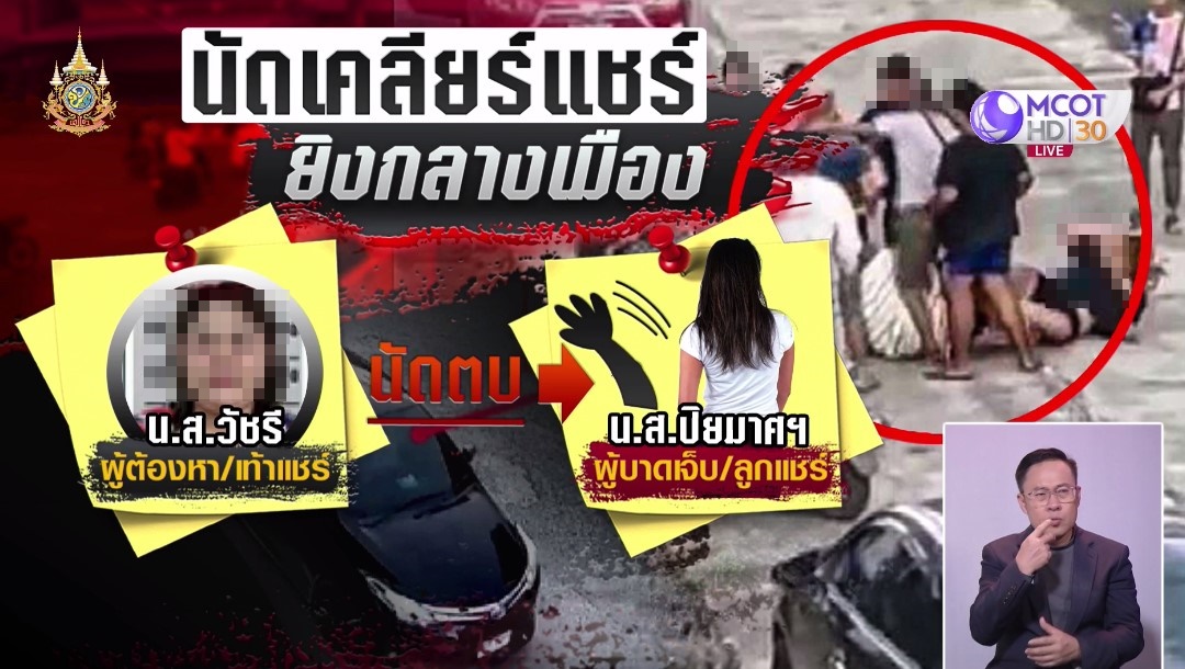 ต่อมามีรองประธานชุมชนฯ เข้าห้ามปราม แยกทั้งสองคนออกจากกัน แต่ลูกแชร์ใช้เท้าถีบหน้าเท้าแชร์ ทำให้ผู้ชายสองคนที่มากับเท้าแชร์ไม่พอใจ จึงใช้อาวุธปืน 2 กระบอก ยิงฝ่ายลูกแชร์ได้รับบาดเจ็บรวม 7 คน ก่อนพากันหลบหนีไป เจ้าหน้าที่พบเบาะแสหลบหนีไปกบดานที่ อ.ดอนสัก จ.สุราษฎร์ธานี