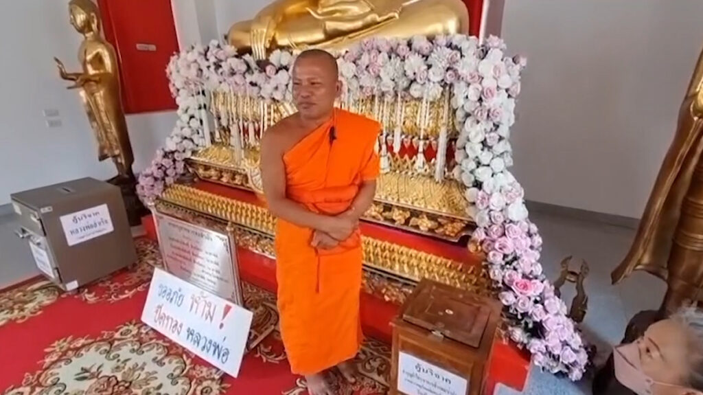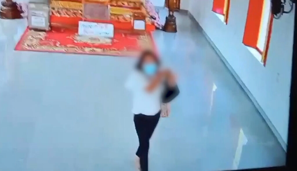 กล้องวงจรปิดบันทึกภาพ ผู้หญิงแต่งตัวดีเดินขึ้นมาที่วิหารปูฮะ วัดพิกุลเงิน ต.บางม่วง อ.บางใหญ่ จ.นนทบุรี หยิบไขควงที่นำมาในกระเป๋า ออกมางัดตู้บริจาคนำเงินไปจนหมดตู้ ก่อนจะรีบลงจากวิหารขับรถออกไป คาดว่าเงินในตู้บริจาคน่าจะเป็นหลักหมื่นบาท