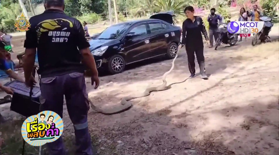 ชาวบ้านบันทึกคลิปงูจงอางตัวผู้ตัวเมียกำลังเกี้ยวพาราสี เพื่อผสมพันธุ์กัน เกรงจะเป็นอันตรายกับผู้ที่ผ่านไปมา โดยเฉพาะเด็กนักเรียน จึงแจ้งทีมอสรพิษวิทยา จ.ตรัง ช่วยจับงูจงอางทั้ง 2 ตัว ที่มีขนาดใหญ่ซุกอยู่ในโพรงดินข้างบ้านนายแสวง อันนารี ที่ ต.บ่อน้ำร้อน อ.กันตัง จ.ตรัง เลื้อยเข้าเลื้อยออกจากโพรงมา 7-8 วันแล้ว