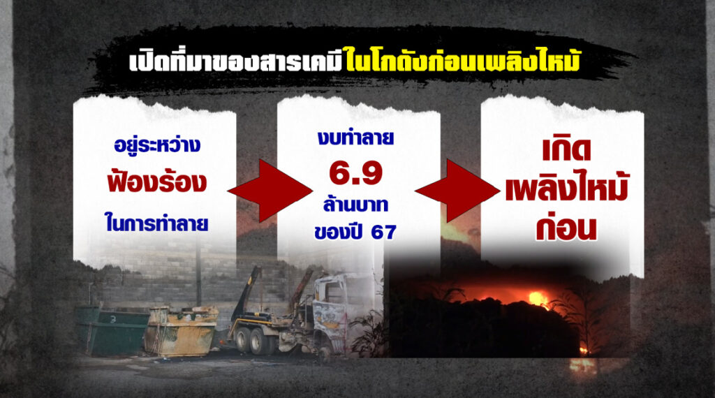 ย้อนไปดูเหตุการณ์เมื่อกลางดึกที่ผ่านมา (29 ก.พ.) ไฟลุกไหม้ช่วงประมาณ 22.00 น. ต้นเพลิงมาจากรถบรรทุกกากสารเคมี ที่จอดทิ้งไว้โกดัง และมีเสียงระเบิดตามมา ก่อนไฟจะลุกลามอย่างรวดเร็ว เพราะภายในโกดังมีขยะอุตสาหกรรมจำนวนมาก ทั้งชิ้นส่วนพลาสติกแข็ง น้ำมันล้างชิ้นส่วนอิเล็กทรอนิกส์ น้ำมันล้างเครื่องอุตสาหกรรม