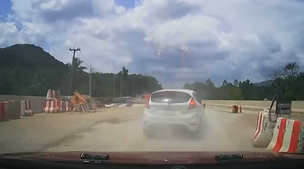 แต่ผู้ต้องหาก็ยังคงพยายามขับต่อไปและกลับรถไปบริเวณทางแยก ก่อนจะถอยรถมาชนรถของเจ้าหน้าที่ตำรวจทางหลวง แล้วพยายามขับรถมุ่งหน้าเข้า กทม. ซึ่งขณะขับหลบหนีมาถึงบริเวณ ถนน ทล.41 กม.60 ต.นาขา อ.หลังสวน จ.ชุมพร ได้ขับรถเบียดกับรถของชาวบ้าน จนทำให้รถของผู้ต้องหาเกิดเสียหลักตกร่องกลางถนน รถพลิกคว่ำอยู่บริเวณดังกล่าว