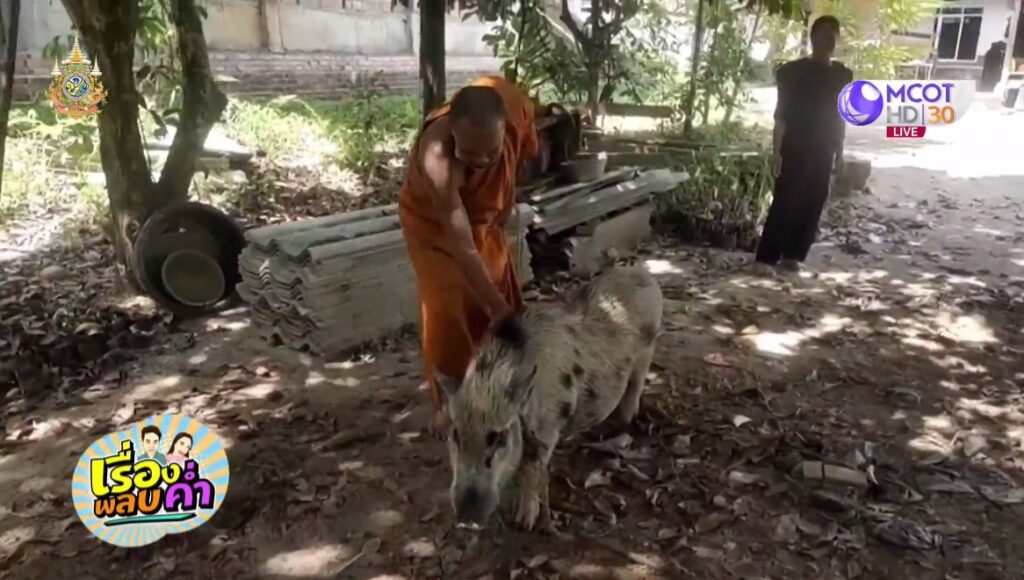 จนในที่สุด เจ้าของได้คุยกับเจ้าอาวาส บอกตัดใจแล้ว หากหมูป่าชอบอยู่วัด อยู่กับพระ ก็ไม่คิดจะขายให้ใครเอาไปชำแหละแล้ว อยากฝากหมู่ป่าไว้ที่วัด ด้านเจ้าอาวาสไม่ขัดศรัทธา เพราะหมูป่าตัวนี้ไม่ดุร้าย. – สำนักข่าวไทย