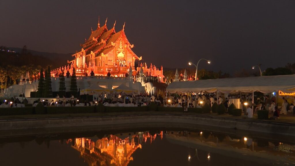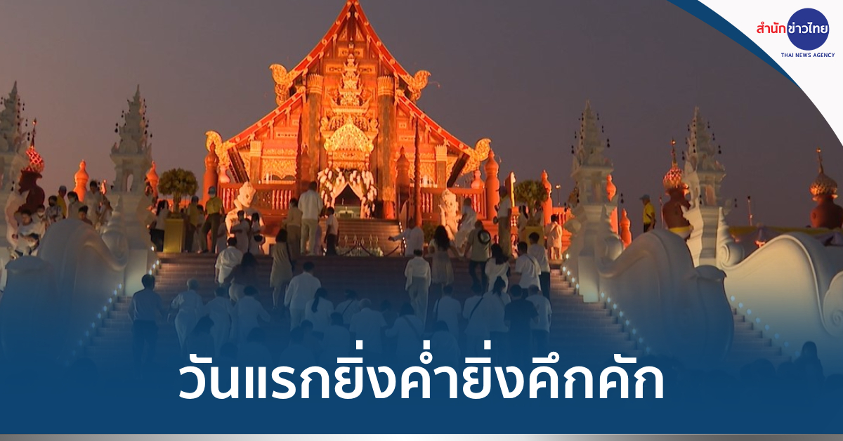 เชียงใหม่ 5 มี.ค. – ยิ่งค่ำบริเวณหอคำหลวง อุทยานหลวงราชพฤกษ์ จ.เชียงใหม่ พุทธศาสนิกชนหลั่งไหลกราบสักการะพระบรมสารีริกธาตุ เนืองแน่น คาดวันแรกนี้มีประชาชนเข้ากราบสักการะพระบรมสารีริกธาตุ กว่า 30,000 คน