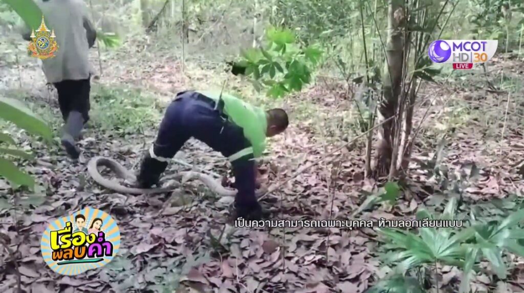 เจ้าหน้าที่ชุดอสรพิษหน่วยกู้ชีพไม้ขมเทศบาลเมืองสะเดา จ.สงขลา ลงพื้นที่ไปจับงูจงอางตัวใหญ่ในสวนยางและสวนผลไม้ น.ส.จิตรวรรณ อ.สะเดา จ.สงขลา หลังเข้าไปทำสวนโดยพาสุนัขสองตัวชื่อ เจ้าแว้น กับเจ้าแวน ไปด้วย ระหว่างเดินอยู่ในสวน สุนัขสองตัวนี้เห่าเสียงดังผิดปกติ วิ่งวนไปมา พอตามไปดูก็เห็นงูจงอางตัวยักษ์กำลังชูคอสู้จึงรีบแจ้งหน่วยกู้ชีพไม้ขมให้มาช่วยจับ