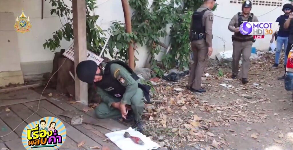 นายบัว ทาสะโก อายุ 66 ปี ผู้รับเหมารื้อบ้าน เล่าว่า มีนายจ้างให้มารับเหมารื้ออาคารของโรงพิมพ์แห่งนี้ เมื่อเช้าจึงพาคนงานมาที่โรงพิมพ์ จากนั้นได้รื้อสิ่งของภายในอาคารและตรวจสอบสิ่งของภายใน จนไปเจอวัตถุคล้ายลูกระเบิด หยิบขึ้นมาดู ตอนแรกก็นึกว่าเป็นของเล่น หรือของประดับบ้าน จึงได้นำออกไปวางไว้ด้านนอก ก่อนถ่ายรูปส่งไปให้นายจ้างดู พอนายจ้างเห็น ก็รีบบอกให้ตำรวจมาตรวจสอบ