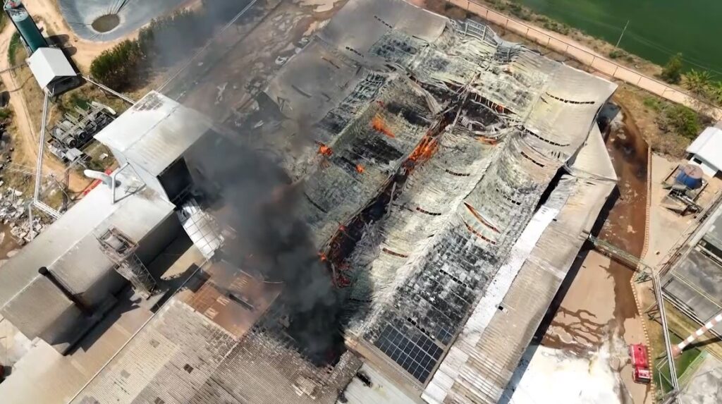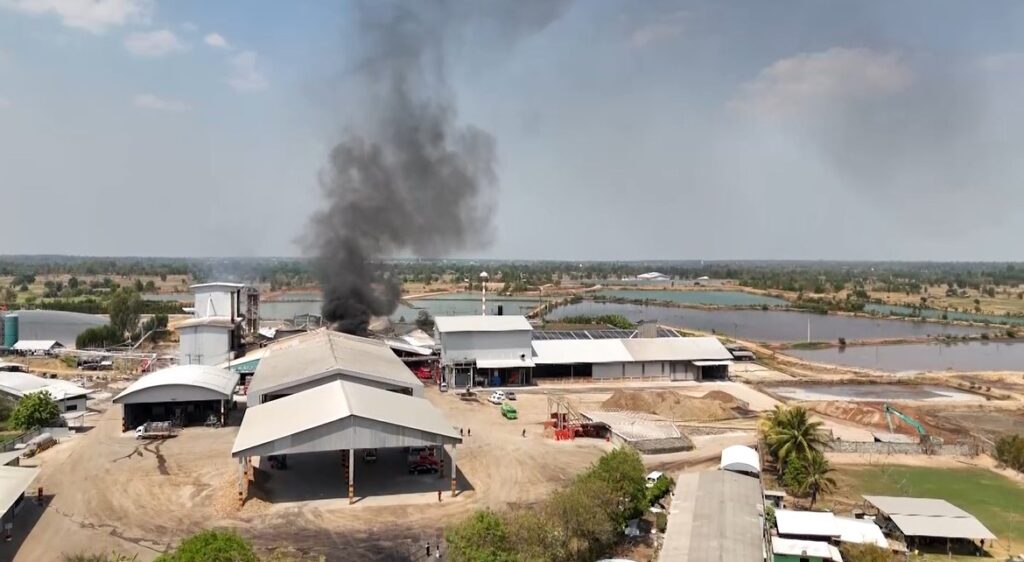 มหาสารคาม 7 มี.ค. – เพลิงไหม้โรงงานแป้งมันขนาดใหญ่ใน อ.บรบือ จ.มหาสารคาม เสียหายกว่า 5,000 ตัน คนงานบาดเจ็บ 4 คน