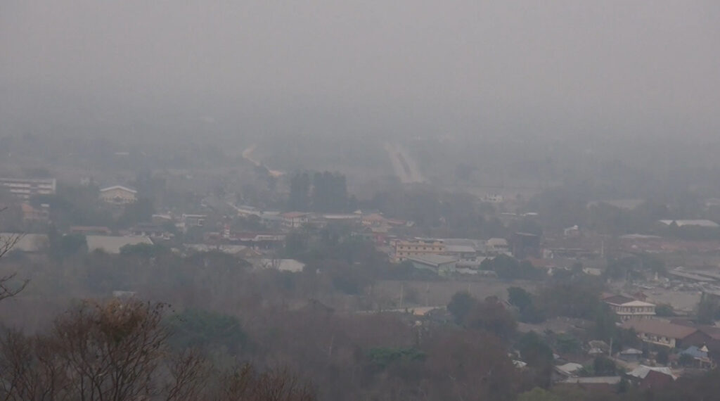 ส่วน จ.น่าน สภาพท้องฟ้าในเมืองถูกปกคลุมด้วยหมอกควันไฟป่า จนไม่สามารถมองเห็นด้วยตาเปล่า โดยค่าฝุ่น PM 2.5 สูงเกินค่ามาตรฐานหลายพื้นที่ โดยวันนี้ ต.ในเวียง อ.เมืองน่าน มีค่าฝุ่น PM 2.5 สูง 118.2 ไมโครกรัมต่อลูกบาศ์เมตร อยู่ระดับสีแดง ประชาชนเริ่มได้รับผลกระทบเมื่อต้องออกมานอกบ้านเรือน แสบตา คันตามผิวหนัง และหายใจลำบาก หลายคนหยุดทำกิจกรรมนอกบ้าน และอีกจำนวนมากเลือกสวมหน้ากากอนามัยไปด้วยขณะเดินออกกำลังกาย