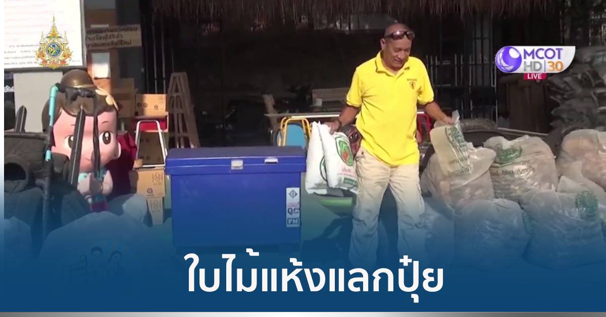 ชาวบ้านในเขตเทศบาลนครเชียงใหม่ เก็บกวาดใบไม้แห้งนำมาใส่ถุงขยะ หรือถุงกระสอบ รวบรวมไปแลกปุ๋ยหมักอินทรีย์ ที่สถานีจัดการวัสดุใช้แล้ว ส่วนช่างสุขาภิบาล สำนักช่าง เทศบาลนครเชียงใหม่ บริเวณสวนหลวงล้านนา ร.9 ในตัวเมืองเชียงใหม่ ซึ่งใบไม้ 1 ถุง สามารถแลกปุ๋ยหมักอินทรีย์ได้ฟรี 1 กระสอบ ขนาด 5 กิโลกรัม