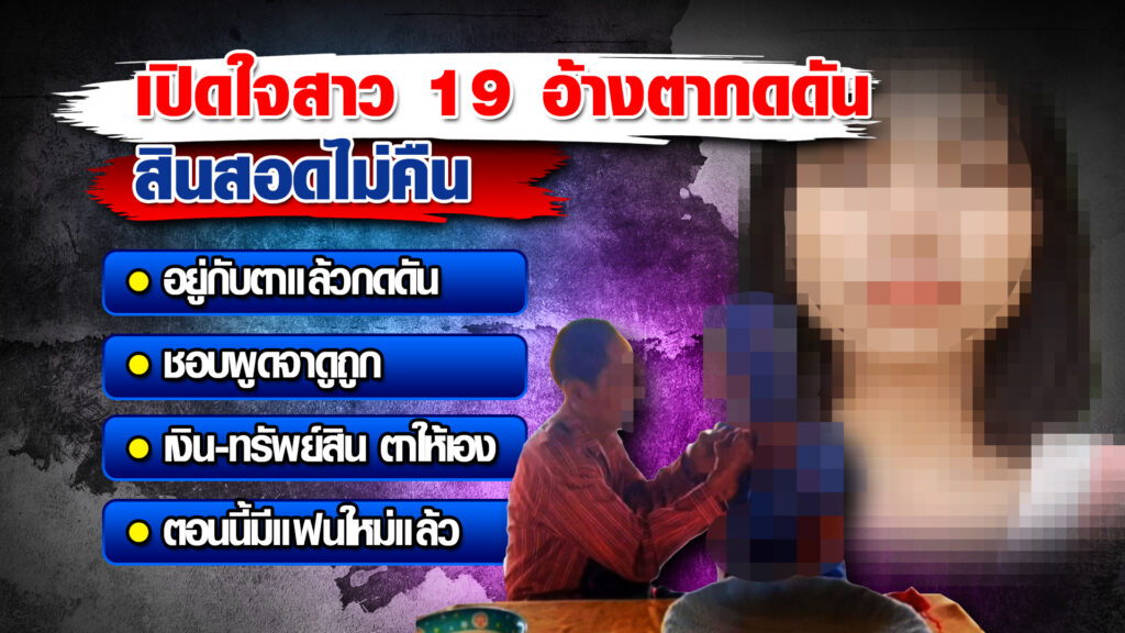ขณะที่สาว 19 อ้างว่า อยู่กับตาแล้วกดดัน ไม่ยอมให้ไปไหน แม้แต่ออกไปทำธุระส่วนตัว แถมตามักพูดจาดูถูกตลอด ส่วนเรื่องมือถือ และของอื่นๆ ยืนยันว่า ตาให้เองด้วยความเสน่ห์หา ทำให้เธอมองว่าเป็นสิทธิ์ที่เธอสมควรจะได้ หากเลิกรากันไป ไม่ขอคืน เพราะขอในสิ่งที่ควรเป็นของตนเท่านั้น แต่พวกหมู ไก่ ที่ตาลงทุนไป อยากเอาก็เอาไปได้ เพื่อให้เรื่องจบด้วยดี เพราะตอนนี้ตนมีแฟนใหม่แล้ว อยากเริ่มต้นใช้ชีวิตใหม่แล้ว