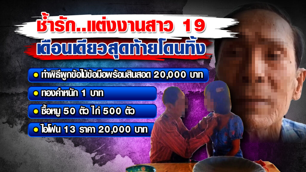 ตาชูชาติ วัย 70 ปี ที่ก่อนหน้านี้เป็นข่าว กล่าวหาว่าสาวรุ่นหลาน วัย 19 ปี หลอกให้รัก จนตาตกลงปลงใจไปสู่ขอกับพ่อแม่ ทำพิธีผูกข้อไม้ข้อมือ พร้อมมอบสินสอด 20,000 บาท ทองคำหนัก 1 บาทให้กับฝ่ายหญิง แต่อยู่กินกันได้เดือนเดียว ตาชูชาติ ที่ย้ายไปอยู่บ้านกับเมียสาว ก็ถูกขอให้ช่วยลงทุนซื้อหมู 50 ตัว ไก่ 500 ตัวมาเลี้ยง นอกจากนี้ยังซื้อมือถือไอโฟน 13 ราคา 20,000 บาทให้ด้วย