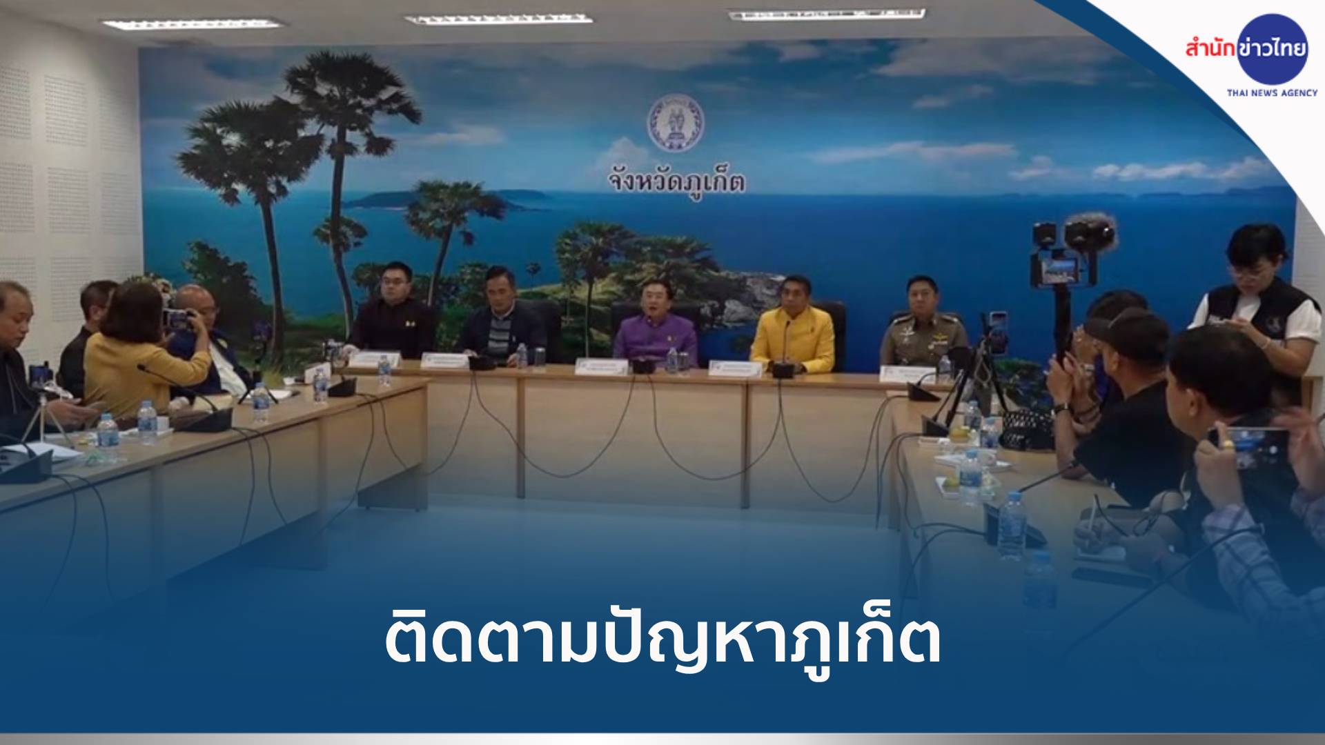 วันนี้ (9 มี.ค. 67) ห้องประชุมมุกอันดา ชั้น 4 ศาลากลางจังหวัดภูเก็ต นายชำนาญวิทย์ เตรัตน์ รองปลัดกระทรวงมหาดไทย พร้อมด้วย นายศรัณย์ศักด์ ศรีเครือเนตร รองอธิบดีกรมการปกครอง นายโสภณ สุวรรณรัตน์ ผู้ว่าราชการจังหวัดภูเก็ต นายนรศักดิ์ สุขสมบูรณ์ รองผู้ว่าราชการจังหวัดภูเก็ต พล.ต.ต.สินเลิศ สุขุม ผู้บังคับการตำรวจภูธรจังหวัดภูเก็ต ร่วมแถลงข่าวการติดตามความคืบหน้ากรณีปัญหาต่างๆที่เกิดขึ้นในพื้นที่จังหวัดภูเก็ต ในช่วงสัปดาห์ที่ผ่านมา