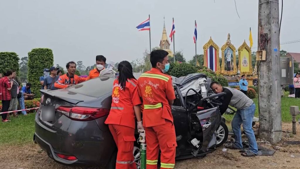 สุรินทร์ 10 มี.ค.-เก๋งเมาซิ่งชนกลุ่มจักรยานเสือภูเขา เสียชีวิต 2 คน จ.สุรินทร์ เพื่อนคนขับเก๋งรับ เพิ่งออกมาจากสถานบันเทิง จำไม่ได้เกิดอะไรขึ้น รู้ตัวอีกทีรถติดคาอยู่เสาไฟฟ้า