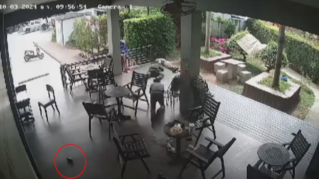 ปัตตานี 10 มี.ค. – เปิดวงจรปิดนาทีคนร้ายปาระเบิด 2 ลูกซ้อน เข้าร้านกาแฟดังในปั๊มน้ำมัน จ.ปัตตานี ตำรวจ-นายก อบต. หนีตายระทึก มีผู้บาดเจ็บ 1 ราย