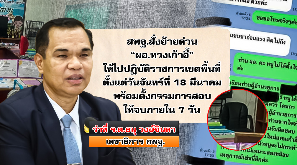 ร้อยเอ็ด 16 มี.ค. – สพฐ. สั่งสอบข้อเท็จจริง-ย้าย ผอ.โรงเรียน แชทตำหนิครูสาวนั่งเก้าอี้ตัวเอง บอกเสียใจมากที่ครูทำพฤติกรรมแบบนี้ ด้านครูสาวเปิดใจเล่าเหตุการณ์ที่เกิดขึ้น