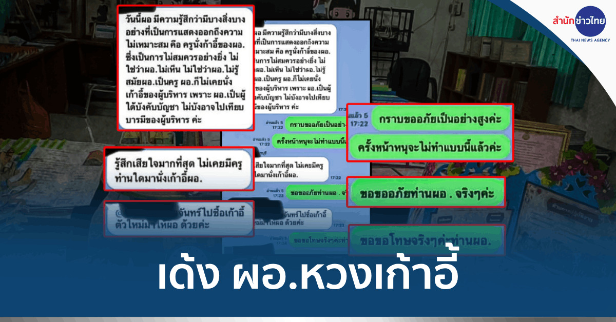 หลังจากเห็นข้อความของ ผอ. ครูเหมียวก็ไม่ได้ตอบอะไรไปอีก กระทั่ง ผอ.นำข้อความไปลงไลน์กลุ่มโรงเรียน และโทรไลน์มาหา แต่ครูเหมียวก็ไม่ได้รับ เพราะตั้งใจว่าวันจันทร์ ซึ่งเป็นวันเปิดเรียนจะไปขอโทษต่อหน้า ผอ. และจะถามว่าจะให้รับผิดชอบอย่างไร อย่างไรก็ตาม ครูเหมียวย้ำว่า เก้าอี้ตัวนี้ เป็นเพียงเก้าอี้รับรอง ไม่ใช่เก้าอี้ประจำตำแหน่งของ ผอ. ปกติไม่ว่าใครมา ก็มานั่ง ทำให้ไม่เข้าใจ ว่าทำไมการนั่งเก้าอี้ตัวนี้จึงเป็นเรื่องใหญ่โต.-สำนักข่าวไทย