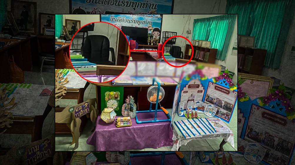 ขณะที่นักข่าวไปลองสอดส่องที่โรงเรียนที่เป็นข่าวฉาว ซึ่งวันนี้โรงเรียนปิดการเรียนการสอนเพราะเป็นวันหยุด แต่ด้วยความที่มีคนอยู่ในโรงเรียน ก็ได้พานักข่าวไปดูอาคารประกันสุขภาพการศึกษาที่มีเก้าอี้ของ ผอ.วางอยู่ที่นี่ พร้อมกับชี้บอร์ดที่ติดชื่อผู้บริหาร ผอ.โรงเรียน และคณะครูที่อยู่ในโรงเรียน และเล่าว่า ครูที่โพสต์ชื่อครูเหมียว สอนอยู่อนุบาล 1 และอนุบาล 2 เพิ่งย้ายมาอยู่ที่นี่ยังไม่ถึง 4 เดือน
