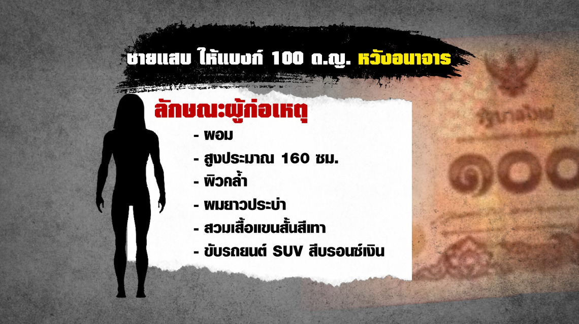 โดยพฤติกรรมคือ ชายคนดังกล่าวมายืนข้างรถ ซึ่งมีชายอีกคนหนึ่งเป็นคนขับ ก่อนจะแกล้งโยนธนบัตรฉบับละ 100 บาท ลงไปที่พื้น และเรียกเด็ก บอกว่าเงินตก พอเด็กก้มเก็บก็คว้าแขน แล้วพยายามจะดึงขึ้นรถ แต่เด็กสะบัดหลุดวิ่งหนีไป แล้วรีบนำธนบัตรดังกล่าวไปทิ้งในถังขยะ แล้วไปแจ้งครูในโรงเรียน ซึ่งเมื่อครูมาตรวจสอบก็พบธนบัตรใบละ 100 บาท ในถังขยะจริง