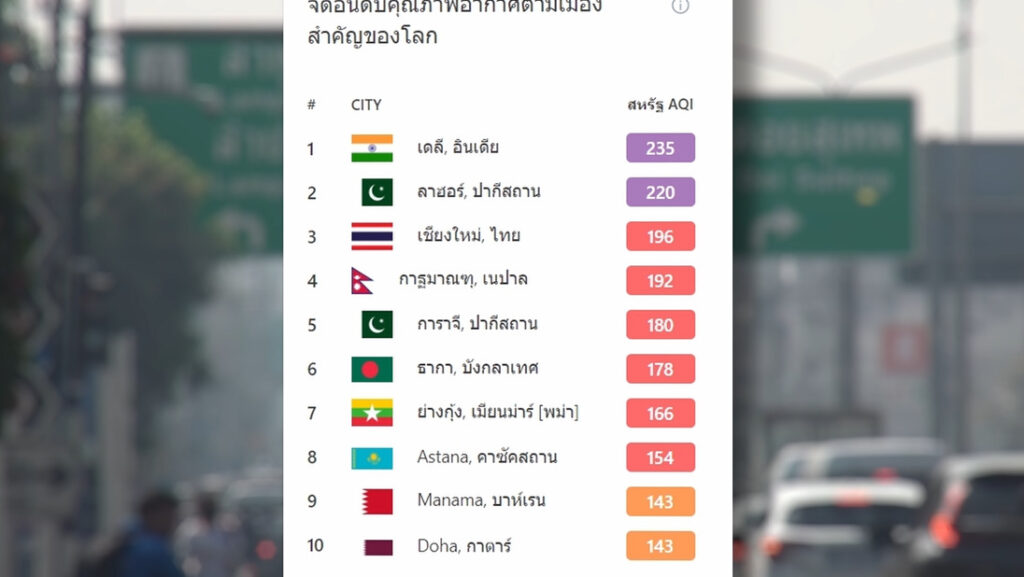 ด้านเว็บไซต์ไอคิวแอร์ รายงานเมื่อเวลาประมาณ 11.00 น. จัดอันดับให้เชียงใหม่ มีคุณภาพอากาศแย่อันดับ 3 ของโลก ค่าดัชนีคุณภาพอากาศ (AQI) อยู่ที่ 196 ไมโครกรัมต่อลูกบาศก์เมตร ขณะที่ช่วงเช้าวันนี้ พบจุดความร้อนกระจายใน 18 อำเภอ จำนวน 112 จุด พื้นที่อำเภอเชียงดาวมากที่สุด 20 จุด เจ้าหน้าที่ยังคงเร่งดับไฟ ซึ่งบางพื้นที่เป็นภูเขาสูง เส้นทางลาดชัน ต้องใช้รถจักรยานยนต์เข้าพื้นที่ เพื่อให้ถึงจุดที่เกิดไฟป่า ซึ่งเป็นไปอย่างยากลำบาก.-สำนักข่าวไทย