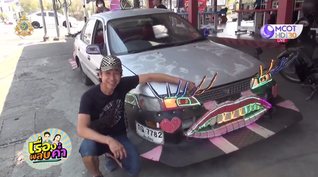 นายชำนาญ ไชยวงศ์ษา อายุ 58 ปี ช่างทำเบาะรถยนต์ ให้บริการแบบเดลิเวอรี่ บริการถึงบ้าน ซึ่งจะเป็นเอกลักษณ์ ไม่เหมือนใคร ที่นำรถยนต์เก๋ง มาตกแต่งหน้ารถ เป็นรถยิ้มฟันสวย ตาหวานและขนตางอน ส่วนท้ายรถมีคิ้ว ตา จมูก และปาก ยิ้มฟันสวย เวลาขับไปจอด หรือติดไฟแดง ใครเห็นก็เหลียวมอง ยกมือถือขึ้นมาถ่ายรูป ไม่เว้นแม้แต่ชาวต่างชาติ กระจกหลังรถ มีข้อความให้บริการรับหุ้มเบาะ รถยนต์ พร้อมเบอร์โทรศัพท์ หากขับช่วงกลางคืน ติดระบบไฟแอลอีดีหลายสี มองเห็นชัด วิบวับสวยงาม