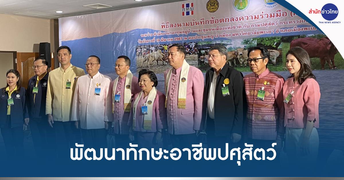 พะเยา 19มี.ค.-ก.เกษตรฯ ผนึก กองทุนหมู่บ้านฯ สานความร่วมมือส่งเสริมองค์ความรู้ พัฒนาทักษะอาชีพปศุสัตว์ หวังยกระดับการผลิตเนื้อสัตว์ที่มีคุณภาพสูง สู่ตลาดภายในและต่างประเทศ