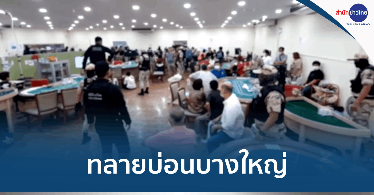 ชุดปฏิบัติการพิเศษกรมการปกครอง นำกำลังเจ้าหน้าที่กว่า 100 นาย บุกจับบ่อนการพนันขนาดใหญ่ ในซอยหมู่บ้านแห่งหนึ่ง ต.บางแม่นาง อ.บางใหญ่ จ.นนทบุรี ที่เกิดเหตุเป็นลักษณะปิดสังกะสีสูงประมาณ 3 เมตร คล้ายแคมป์คนงานก่อสร้าง ด้านในสามารถจับนักพนันได้ประมาณเกือบ 300 คน พบอุปกรณ์การเล่นพนัน โต๊ะบาคาร่า 12 โต๊ะ โต๊ะเสือ-มังกร, กำถั่ว, โต๊ะไฮโล โดยด้านในแบ่งออกเป็นห้องวีไอพี จำนวน 3 ห้อง ติดตั้งกล้องวงจรปิดกว่า 60 ตัว สามารถยึดเงินสดของกลางกว่า 2 ล้านบาท ชิปที่ใช้แทนเงินสดประมาณ 50 ล้านบาท อาวุธปืน 1 กระบอก เบื้องต้นยังไม่มีใครรับเป็นเจ้ามือ