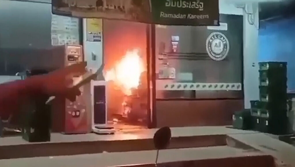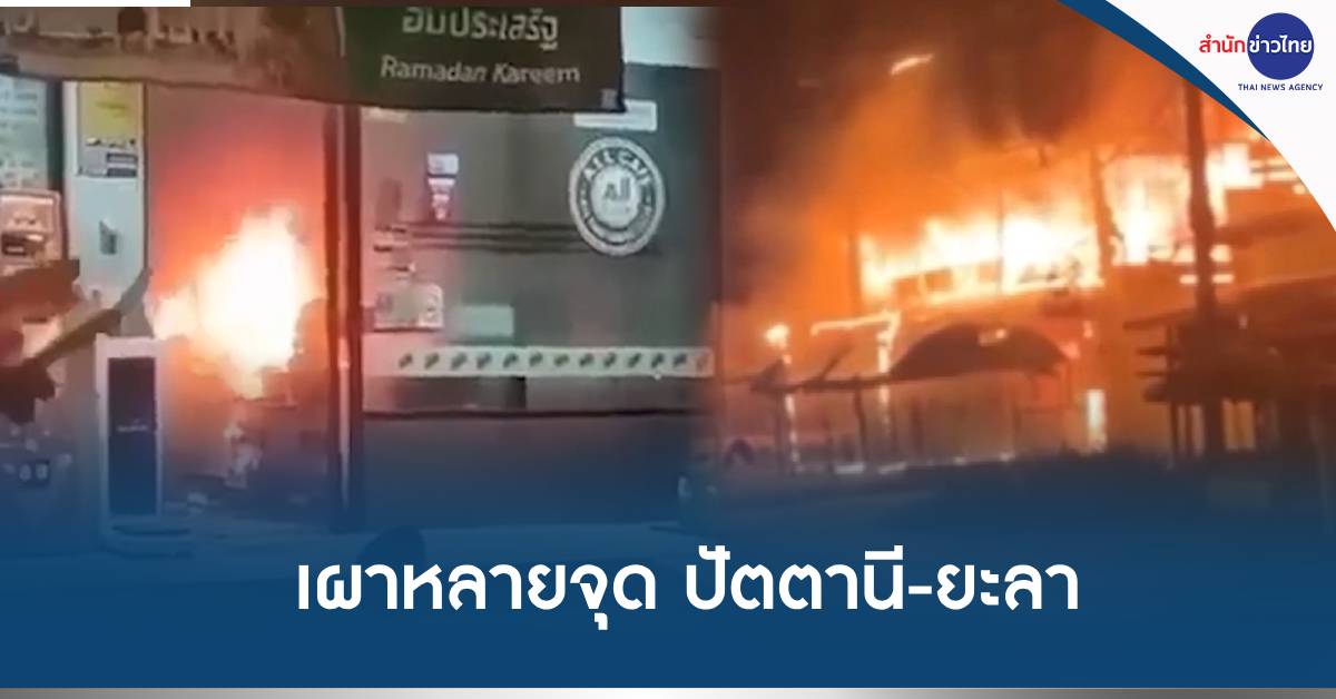 ปัตตานี, ยะลา 22 มี.ค.-ป่วนใต้ คนร้ายกระจายกำลังวางเพลิงร้านสะดวกซื้อใน 4 อำเภอ จ.ปัตตานี ส่วนยะลา คนร้ายบุกสหพันธ์การไฟฟ้าโรงงานแก๊สหุงต้มขนาดใหญ่ จับคนงานก่อนวางเพลิง และปล้นทรัพย์โรงโม่หิน