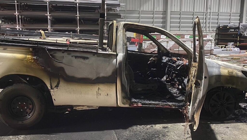 ผู้ก่อเหตุรุนแรงวางเพลิงรถก่อสร้างถนน-กล้องซีซีทีวี