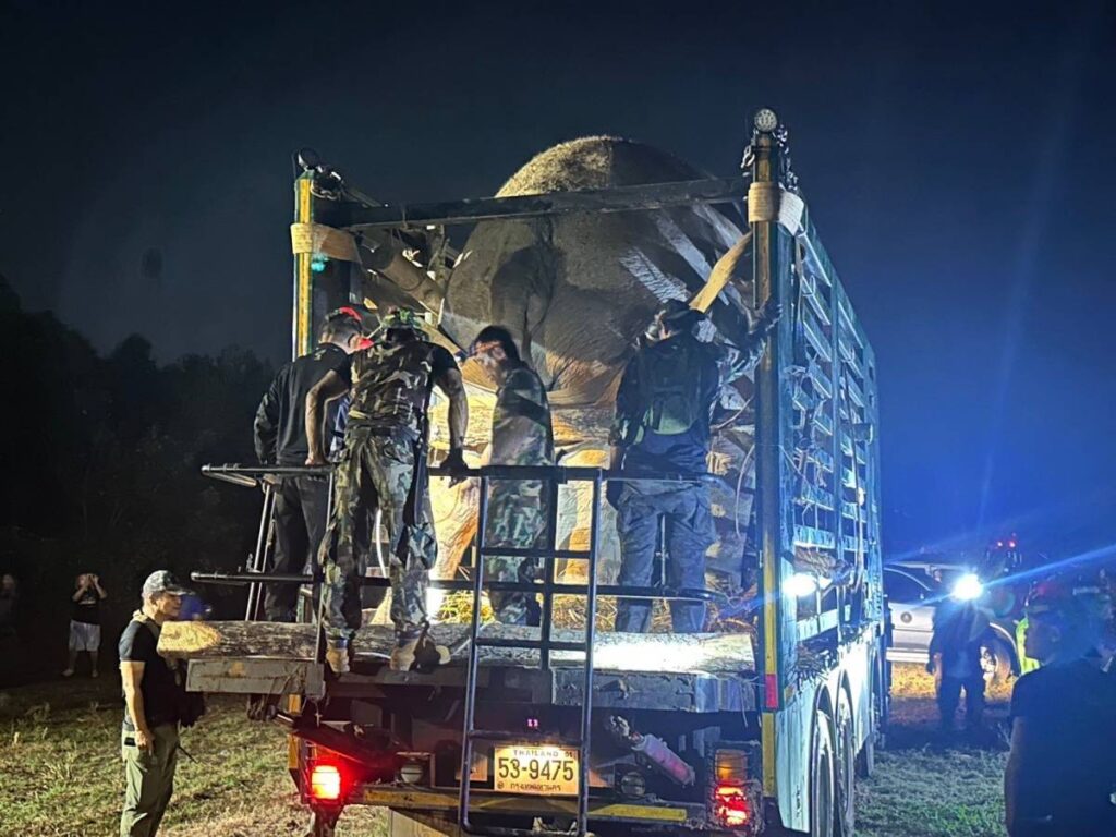 ต่อมาเวลา 23.43 น. ได้นำช้างป่าขึ้นรถขนย้ายช้างป่าแล้วเสร็จ ในเวลา 00.06 น. เก็บตัวอย่างเลือดช้างป่าโดยทีมแพทย์และได้ยิงยาซึมเข็มที่ 6 ขนาด 5 cc. เวลา 00.10 น. เวลา 00.22 น. เริ่มเคลื่อนย้ายช้างป่าจากพื้นที่ ตำบลเข้าไม้แก้ว อำเภอกบินทร์บุรี จังหวัดปราจีนบุรีไปยังพื้นที่ป่าทุ่งกระทิง เขตรักษาพันธุ์สัตว์ป่าเขาอ่างฤาไน โดยระหว่างเคลื่อนย้ายช้างป่า ทีมสัตวแพทย์ได้เพิ่มยาซึมให้กับช้างป่าเข็มที่ 7 ขนาด 5 cc เวลา 01.27 น.