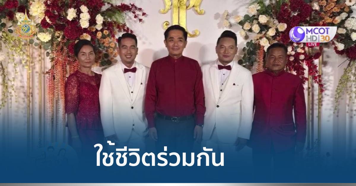 สระแก้ว 25 มี.ค. – ความรักไม่จำกัดเพศ หนุ่มหอบสินสอด 4 แสน ทอง 3 บาท แหวนเพชรอีก 1 วง ไปสู่ขอลูกชายรองนายก อบต. หลังคบหาดูใจกันมา 5 ปี แขกมาร่วมงานเป็นสักขีพยานรักเกือบพันคน