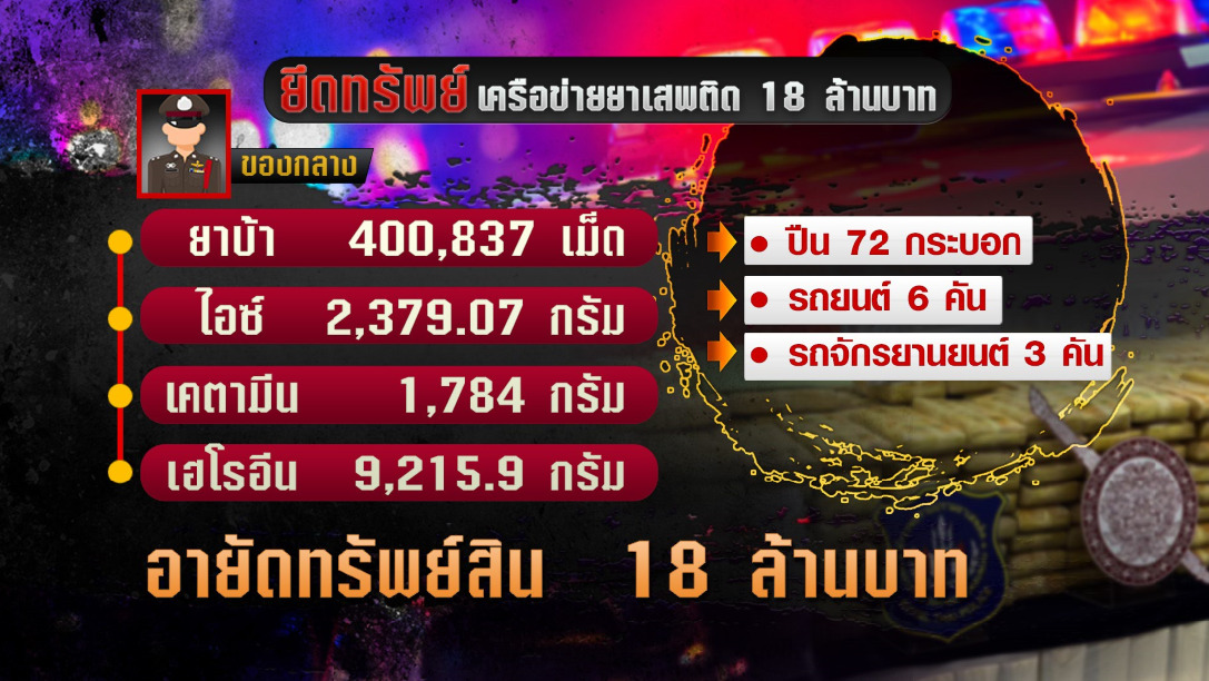 ยาเสพติดประเภท ยาบ้า 400,837 เม็ด ไอซ์ 2,379.07 กรัม เคตามีน 1,784 กรัม และเฮโรอีน 9,215.9 กรัม ถูกยึดไว้เป็นของกลาง พร้อมกับปืน 72 กระบอก รถยนต์ 6 คัน รถจักรยานยนต์อีก 3 คัน รวมถึงอายัดทรัพย์สินรวมกว่า 18 ล้านบาท หลังจากตำรวจภูธรจังหวัดสมุทรปราการ กองอำนวยการรักษาความมั่นคงภายในจังหวัดสมุทรปราการ สนธิกำลังเจ้าหน้าที่ฝ่ายปกครองในพื้นที่ ปิดล้อมตรวจค้นพื้นที่เสี่ยงในการเกิดอาชญากรรม โดยตรวจค้นทุกสัปดาห์ รวม 20 ครั้ง จากเป้าหมายรวม 657 แห่ง โดยใช้หมายค้นของศาลจังหวัดสมุทรปราการรวม 465 หมาย สามารถจับกุมผู้ต้องหาทั้งหมด 976 ราย