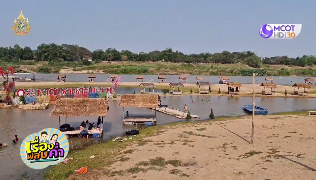 จากสภาพอากาศร้อน โดยเฉพาะช่วงกลางวัน ทำให้หลายคนทั้งเด็ก ผู้ใหญ่ วัยรุ่น แห่ไปเล่นน้ำเพื่อคลายร้อนที่หาดทรายสะแกงาม กลางแม่น้ำเจ้าพระยา บริเวณหน้าวัดสะแก ต.โพนางดำตก อ.สรรพยา จ.ชัยนาท ตอนนี้ระดับน้ำในแม่น้ำเจ้าพระยาลดต่ำ จนเกิดเป็นสันดอนทรายและเป็นร่องน้ำตื้นๆ สามารถลงเล่นน้ำได้ ไม่เป็นอันตรายมากนัก